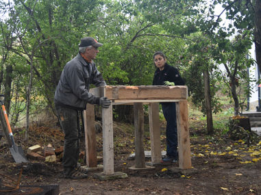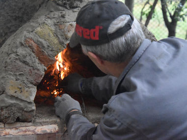 Участниците пристигнаха в ранния следобед, а след кратък обяд Питър представи дейността на училището, в което преподава. В семинарната зала обсъдихме процеса на строителството на пещта, а участниците разказаха по няколко думи за себе си. Направихме работен план и се заловихме за работа. До края на деня изградихме дървената конструкция, която щеше да ни послужи за основа, а през следващите няколко дни пещта израстваше пред очите ни слой след слой. Въпреки дъждовното и студено време, желанието ни да усвоим нови знания и да се учим един от друг надделя. Също така осъзнахме колко търпение е нужно, когато се работи с естествени материали като глина, каменно брашно и слама, за да се избегне напукването по време на съхнене.